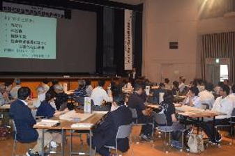 県内の他市町村の取組の情報交換と、社会教育委員としての視点や役割を再確認し、地域に戻って実践できそうなことをもって帰る、という2つを目的に「KJ法」を使ってグループ協議を行いました。経験年数を積まれた参加者の方が、ご自分の経験から様々な課題や解決策等を積極的に話され、グループ内のメンバーもうなずきながら聞く姿が見られました。課題解決に向けたいろいろなアイデアを出し合う様子がいくつものグループで見られ、活発な交流になりました。これからの社会教育委員に期待される、「社会教育委員としての専門性」と「実践力」の向上をめざし、明日からがんばっていくことを全体で確認することができました。 |