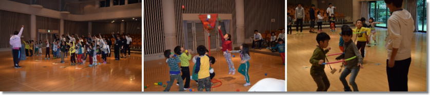 | 前回もたいへん盛り上がった、サンサン!大運動会の2回目を実施しました。今回は「風船運び」「玉入れ」「フラフープリレー」の3種目です。「風船運び」では班でシーツの上に風船を乗せて、上手に運ぶことができました。「フラフープリレー」では小学生と年長さんとのペアを組んで、協力してフラフープをつないでいました。最後は点数で勝ち負けはつきましたが、勝ち負け関係なく、みんな最後まで仲良く楽しく活動ができました。 |