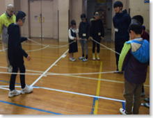 | フリスビーを上手に投げて、相手に当てるドッチビーを行いました。フリスビーを投げるのは、なかなか難しいようでしたが、一生懸命逃げる子、積極的に当てにいく子と、それぞれチームに貢献していました。しっかりとルールを守って、楽しく活動することができました。 |