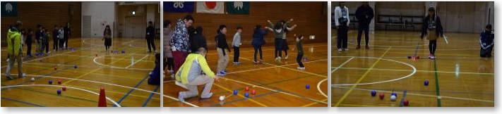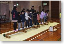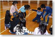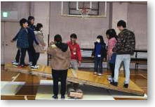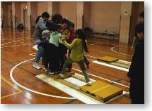 | 小さな台に全員が乗れるよう抱っこやおんぶをしながら、台から台へ全員が飛び移る活動 |