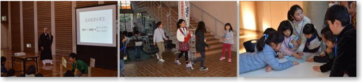 一休さんから出された挑戦状には、様々な謎が仕掛けられており、子ども達はその謎を解きながら館内をめぐりました。とんちクイズからスタートし、最後には、一休さんとの直接勝負をしました。クリアした班はキーワードが書かれたカードを受け取り、とても大喜びでした。全ての班の文字を合わせることで「友情・協力・努力」の文字が完成しました。4つのやくそくと併せ、子ども達に改めて、やくそくを達成できているか、振り返るきっかけとなりました。 |