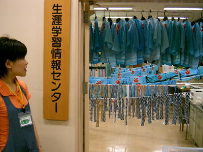 | 夜、子どもたちと一緒にびしょ濡れになって帰ってきた法被の片付けも、センター職員で行います。 洗濯機をフル稼働させ、執務室に紐を張って干した様子が下の写真です。 その量、なんと洗濯機9回分! だいぶ傷みのはげしい法被もあったけど、また来年もよろしくね。 |