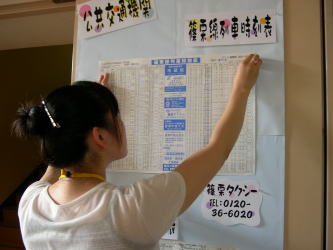 | 社会教育総合センターには年間約11万5千人(延べ)の方が訪れています。 来所される際の交通手段は様々ですが、公共交通機関使用される方も当然、少なくありません。 先日、正面玄関入ってすぐのところにある公共交通機関の案内掲示をリニューアルしました。 (時刻表等は変更されるたびに更新しています) |