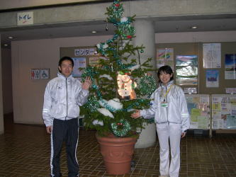 12月に入りセンターも慌ただしくなってきました。 しかし、慌ただしくなるだけが年末ではありません。 来館者の方々に少しでも年末の楽しい雰囲気を感じてもらおうと、 センターにクリスマスツリーと門松が登場しました。 クリスマスツリーは、当センター職員で飾り付けし、ロビーに設置しています。賑やかに電気が点滅して、子どもたちを喜ばせています。 (もちろん、消灯時間にはこの電気は消灯されてしまいます・・。) |