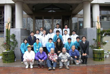 | 記念にボランティアの方々とセンター職員で写真を撮りました。 皆さんご来館を、クリスマスツリー&門松と一緒にお待ちしております。 |