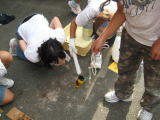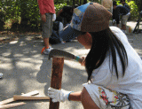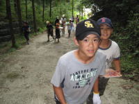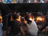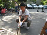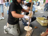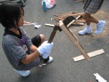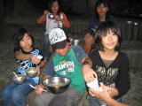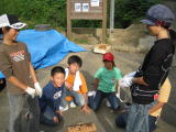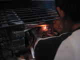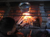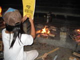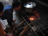 | 火起こしでついた火を薪にうつして…なかなか大きな火にならない |