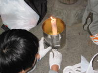 ←着いた火をローソクに移して「やっと、ついた!!」 |