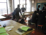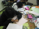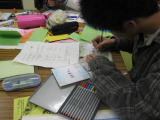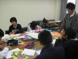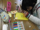 子ども文化コミュニティでいっしょに活動している本年受験生の仲間への激励のメッセージカード作りをしました。相手に喜んでもらえるカード、受験に向けての励ましになるカードになるように、みんなで相談しながら熱心に作っていました。 |