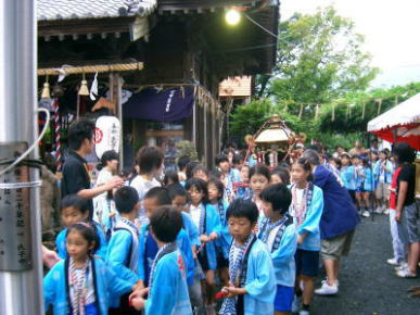 7/8(土)、子どもたちは篠栗町のお祭りに参加。 みこしをかついで町内を練り歩きます。 |