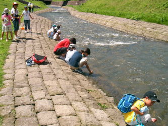 | 7/9日(日)は鳴淵ダムで笹舟を流して水とふれあいました。 昨日は雨、今日は炎天下と、子どもたちも大変ですが、 このような色々な経験が子どもたちを大きくしていくのです。 |