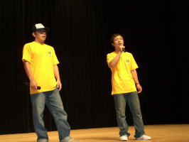 | のど自慢の部においては、「坂本啓太・鳥飼修平」のグループ(上段中央)が最優秀賞となりました。 |