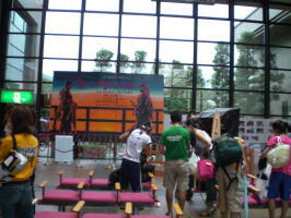 | ロビーでは展示の部が行われ、人力車、版画、ウエディングドレスなどが展示されました。 | |