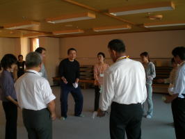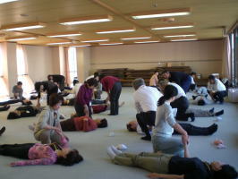 | 第2回カウンセリング講座では、リラックス体操やロールプレイなど演習を通しての講義がありました。 リラックス体操は二人一組になって心身をほぐす体操、ロールプレイはカウンセラー役とクライアント役に分かれて模擬カウンセリングを行うものです。 参加者が実際にやってみることを中心にした内容で、頭で学習するだけでは気付かないような点に気付くことができたとの感想が多くありました。 |