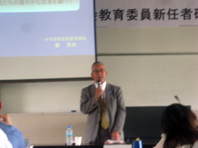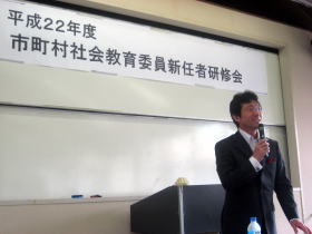 | 平成22年7月5日(月) | 市町村の新任社会教育委員を対象に、社会教育委員の役割や社会教育の課題等について研修会を行いました。 (参加者90名) |  | 午前中は、九州共立大学教授の古市勝也氏に、社会教育委員の役割についてご講演いただきました。 | | 九州共立大学教授 古市勝也 氏 | |  |  | | 豊前市社会教育委員 濱田 秀文 氏 | みやま市社会教育委員 都 英幸 氏 | 午後は、豊前市社会教育委員の濱田 秀文氏とみやま市社会教育委員の都 英幸氏に、それぞれの実践発表をしていただき、その後のグループ協議では活発な意見交流が行われました。 | | | | |