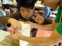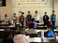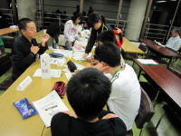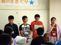 10月9日(土)〜10日(日)に当センターにおいて、主催事業「きらめき未来塾inささぐり サード・ステージ 地域の方とふれあおう!」(年間4回シリーズの3回目)が開催されました。この事業は、知的障害のある生徒を対象に、就労体験や交流プログラム等多様な体験活動をとおして、職業的自立をめざすキャンプです。(参加者31名、ボランティア7名、保護者26名参加) 今回は、地域の運動会にスタッフとして参加するグループ、センターの案内板を製作するグループ、センターの活動プログラムに関する場所を整備するグループの3つに分かれてボランティア体験にチャレンジしました。 次回は、12月4日(土)〜5日(日)に「ファイナル・ステージ 自分探しの旅に出よう!」を実施します。 | |
