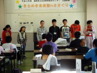 | ボランティア体験で自分たちが役に立った事やがんばった事などをまとめてきらめき新聞を作り、きらめき発表会をしました!発表もはっきりとできるようになってきました! |