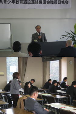 県内の青少年教育施設職員、県・市町村の生涯学習・社会教育関係職員等を対象に、青少年教育支援者としての資質向上を図るために研修会を行いました。