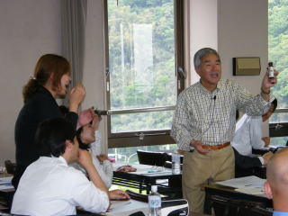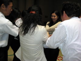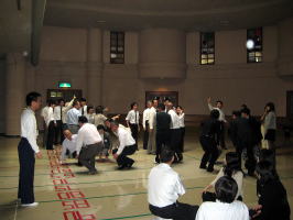1日目の最後は、当センター職員による「アイスブレーキングの手法について」を行いました。アイスブレーキングの活動の意義を説明しながら、体験を通して様々な手法を覚えていただきました。