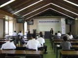 | 次に、県の施策説明として、教育庁企画調整課企画監 宮野哲美氏より、「福岡の教育ビジョン〜教育力向上福岡県民会議 第一次提言〜」について、教育庁社会教育課社会教育班長 井浦政義氏から「福岡県における社会教育の推進方策」について講義・説明をいただきました。 |