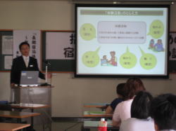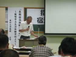 夜は、「長期宿泊体験の勧め〜飯塚市立生活体験学校より〜」というテーマでご講話いただきました。