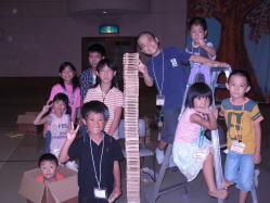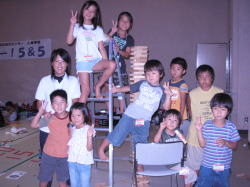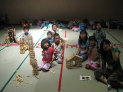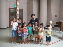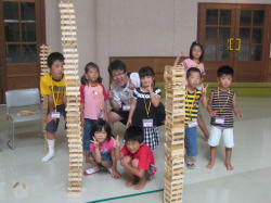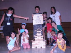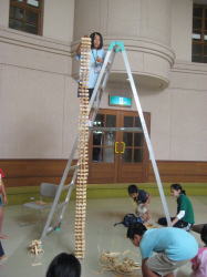 カプラ積み木では、4mくらいの高さまで積み上げることができました。班のみんなで協力しながらいろんな作品ができあがりました。