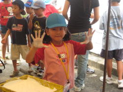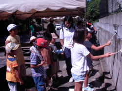 当日は、幼児と小学生81名、ボランティアスタッフ15名が参加し、カプラ積み木と壁画制作を体験しました。
