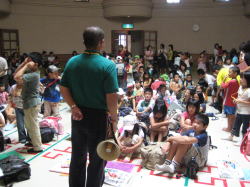 当日は、幼児と小学生80名、ボランティアスタッフ20名が参加し、フォトラリーとパネルシアター、天体観測を体験しました。