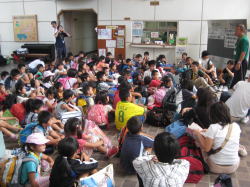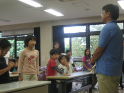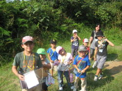 1日目のフォトラリーでは、グループごとに写真をヒントにしながら、約2時間半かけて夜須高原の森の中を探検しました。小学生が幼児の手を引きながらリードし、全員最後まで歩きぬくことができました。パネルシアターは、ボランティアスタッフとしても参加していただいた当センターの施設ボランティア「若杉の会」にしていただきました。子どもたちは、目を輝かせてパネルシアターの世界に入り込んでいました。夜は、あいにくの天候で星を見ることはできませんでしたが、プラネタリウムや夜景を楽しむことができました。