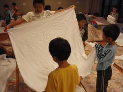 ↑協力して布団のお片付け |