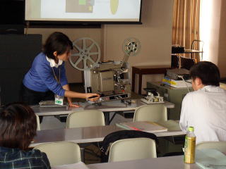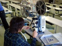 2種類の映写機を使って実際の操作を各自で行いました。