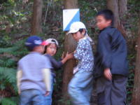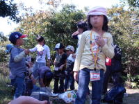 スコアビンゴでは、裏山を探検しながら、思いっきり秋の自然を感じとりました。ポケットいっぱいお土産にドングリを拾った子もいたようです。