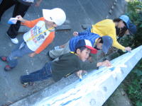 当日は、幼児と小学生85名、ボランティアスタッフ26名が参加し、さわやかな秋晴れの下、あじさい広場の壁画制作と裏山でのスコアビンゴを体験しました。