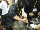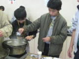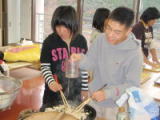 | みんなでケーキ作り。炊飯ジャーでできました。 |
