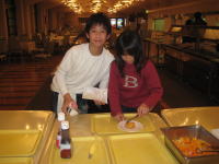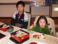 | 雪がちらつく寒い大晦日となりました。 ロビーでは、いろりに炭をおこして皆さんをお迎えしました。 |