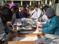 大晦日は、もちつき大会、そば打ち、創作活動(凧・テープごま・プラ板・七宝焼・タルト作り)、ナイトシアター、カウントダウンパーティー、キャンプファイヤーを楽しんでいただきました。