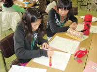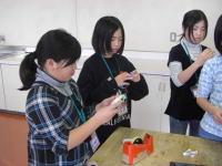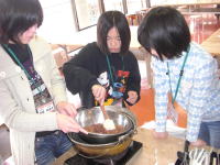 | 実際にチョコ作りを行ったり、作り方の確認やきちんと説明できるようにリハーサルを行ったりしました。 |