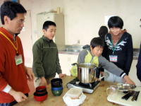 | 実際にみそ汁を作ったり、当日使用する野外炊飯場でリハーサルを行ったりしました。 |