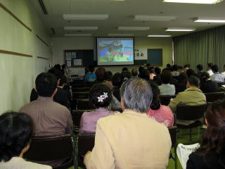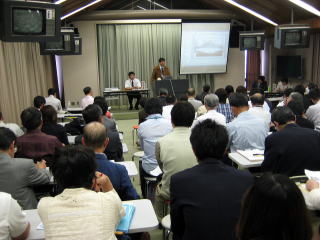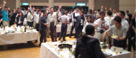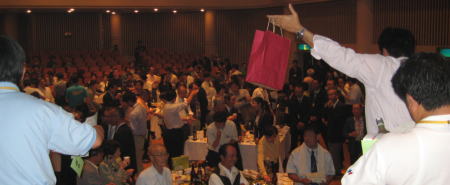 恒例の懇親会、特産品のせりも行われ、大盛会でした。 |