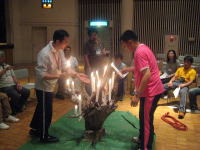 | 自分たちでおこした火で、キャンドルのつどいを行いました。 |