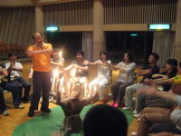 1日目は、教育センター参事池田隆氏の講話のあと、当センターの体験活動、九州あそびの研究所所長中島宏氏による野外炊飯とキャンドルのつどいが行われました。