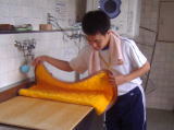 職場実習…それぞれの職場で、いろいろな仕事を体験させていただきました。みんな真剣ないい顔で働いています。 |