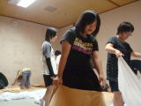 就寝準備…朝から夜までがんばったのでみんな「バタン・キュー」です。 |