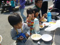 3、カレーライスを食べている様子