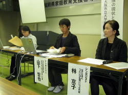 11月13日に、平成21年度福岡県家庭教育支援者等セミナーの第3回目を開催しました。![]() 本年度最後のセミナーは「地域ぐるみ子育て支援の担い手として」というテーマで実施し、今回も県内各地から子育て支援に関わる多くの方々(市町村教育委員会、市町村部局、子育て支援センター、子育て団体等)に御参加いただきました。 はじめに、大阪市立大学の山縣文治教授に講演していただき、(演題:「地域ぐるみ子育て支援の現状と展望について」)後半のシンポジウムでは、県内の3事例をもとに地域ぐるみの子育て支援の大切さについて深めていきました。 |