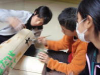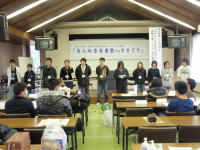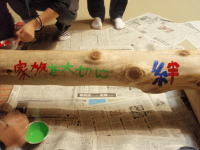 | 12月12日(土)〜13日(日)に当センターにおいて「きらめき未来塾inささぐり」〜第4回「サンクス・キャンプ」〜が開催されました。今回が4回シリーズの最終回となり、塾生19名、ボランティア12名が参加しました。 1日目は、「記念作品制作」として、丸太のベンチ作りの仕上げをしました。班ごとに将来の夢や好きな言葉など自分の思いをペンキで書き表しました。このベンチはセンターに置き、大切に使わせていただきます。 2日目は、今年の夏に職場実習でお世話になった方々を招待して、「ありがとうパーティー」を開きました。ダッチオーブンを使って、炊き込みご飯、クリームスパゲッティー、鶏手羽元のコーラ煮、キャベツスープを作り、会食をしました。どのメニューもとてもおいしくでき、お客様からの評判も上々でした。パーティーの最後には、感謝状をお渡しして感謝の気持ちを表しました。 また、キャンプの締めくくりとして、「きらめきシンポジウム」と「きらめき発表会」を行いました。シンポジウムでは、「子どもたちの自立に向けた、体験活動プログラムや支援のあり方」というテーマのもと、塾生とその御家族、学校関係者等に参加していただき、有意義な時間を共有ことができました。発表会では、このキャンプをとおして自分が成長したことや将来に向けての思いを一人ずつ発表することができました。 閉塾式では、修了証を塾生一人一人が受け取り、テーマソング「栄光の架け橋」(ゆず)を熱唱して感動のフィナーレを迎えました。 この1年間、塾生は本当によくがんばり成長しました。また、保護者の御理解と御協力にも感謝いたします。そして、塾生を多方面から支えていただいた多くの方々に感謝申し上げます。ありがとうございました。 |