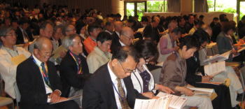 |  | | ↑受付風景 | ↑開会式会場 | | |