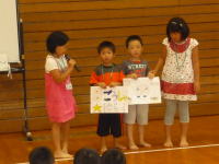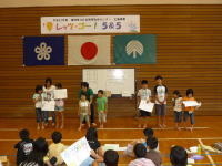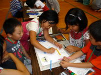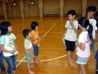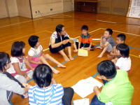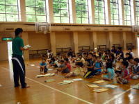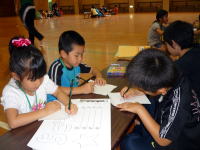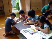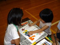 第1回レッツ・ゴー!5&5を、6月26日(土)に開催しました。 この事業は、小学4・5年生(32名)と年長児(32名)という異年齢集団で、年間5回にわたって、様々な体験活動を行います。小学生は5回のうち3回、年長児は2回の宿泊があります。この活動を通して、困難を乗り越える力やコミュニケーション能力の育成を図るとともに、小1プロブレムの解消を主な目的としています。 第1回では、子どもと保護者にわかれて、それぞれの活動を行いました。子どもプログラムでは、ボランティアを含めたスタッフ支援のもと、レクリエーションやオリジナルフラッグ作りをしました。活動の中では、小学生が年長児の支援をする姿も多く見られました。保護者プログラムでは、近畿大学九州短期大学の鐘ヶ江淳一教授から、「ワクワク・ドキドキ、異年齢の体験活動で育つこと」という演題でお話をしていただきました。また、保護者懇談会「親の本音トーク」では、子育てに関する話題で大いに盛り上がりました。 | |