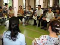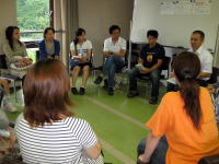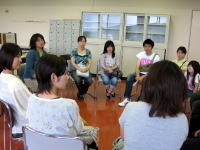 ○講演「ワクワク・ドキドキ、異年齢の体験活動で育つこと」 じゃんけん遊びで参加者みんなが和やかになりました。 | | | ○懇談会「親の本音トーク」 子どものしかり方、ほめ方など、子育ての悩みがたくさんでました。 |  |  |  |  | |