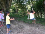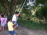 ツリーハウスのブランコで、お友だちを押してあげたよ。そーれ! |