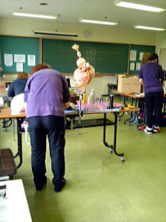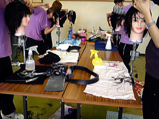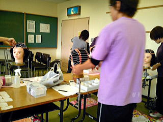 パーマの練習です。ロットの巻き方の練習って大変そうですが、みなさんとても真剣に取り組んでいました。 |